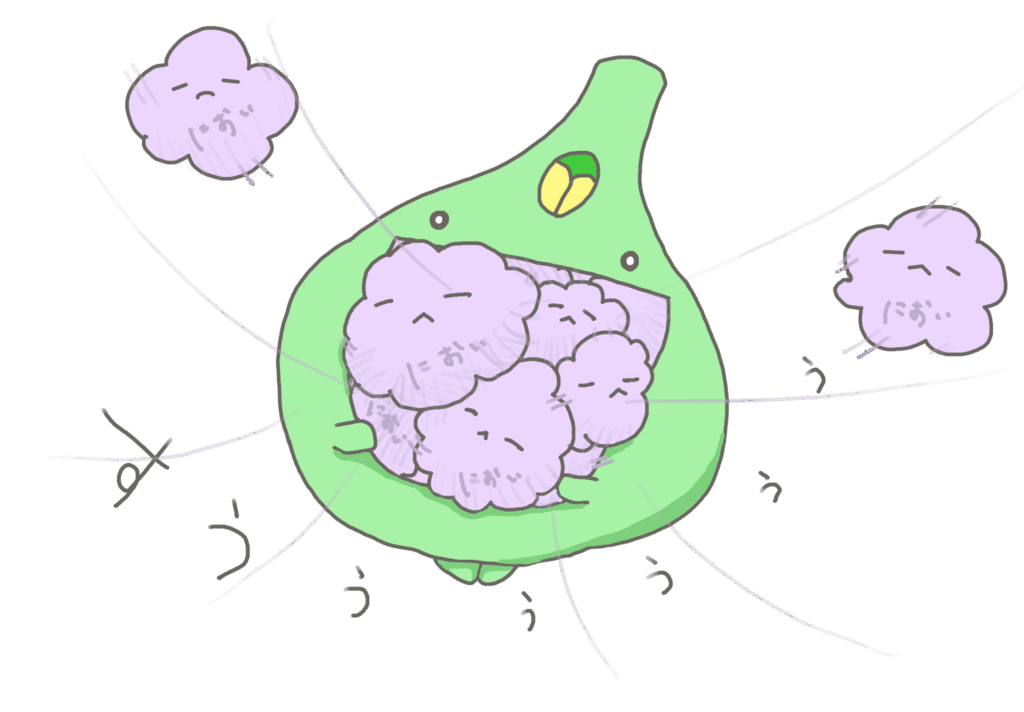 「やあ!ボクは、ニオイを取るのが得意なんだ。みんなが寝ている間に発生する汗や皮脂のニオイを、ボクの中に閉じ込めちゃうよ。おかげで、朝起きたときも枕がスッキリ。気持ちのいい朝を迎えよう!」